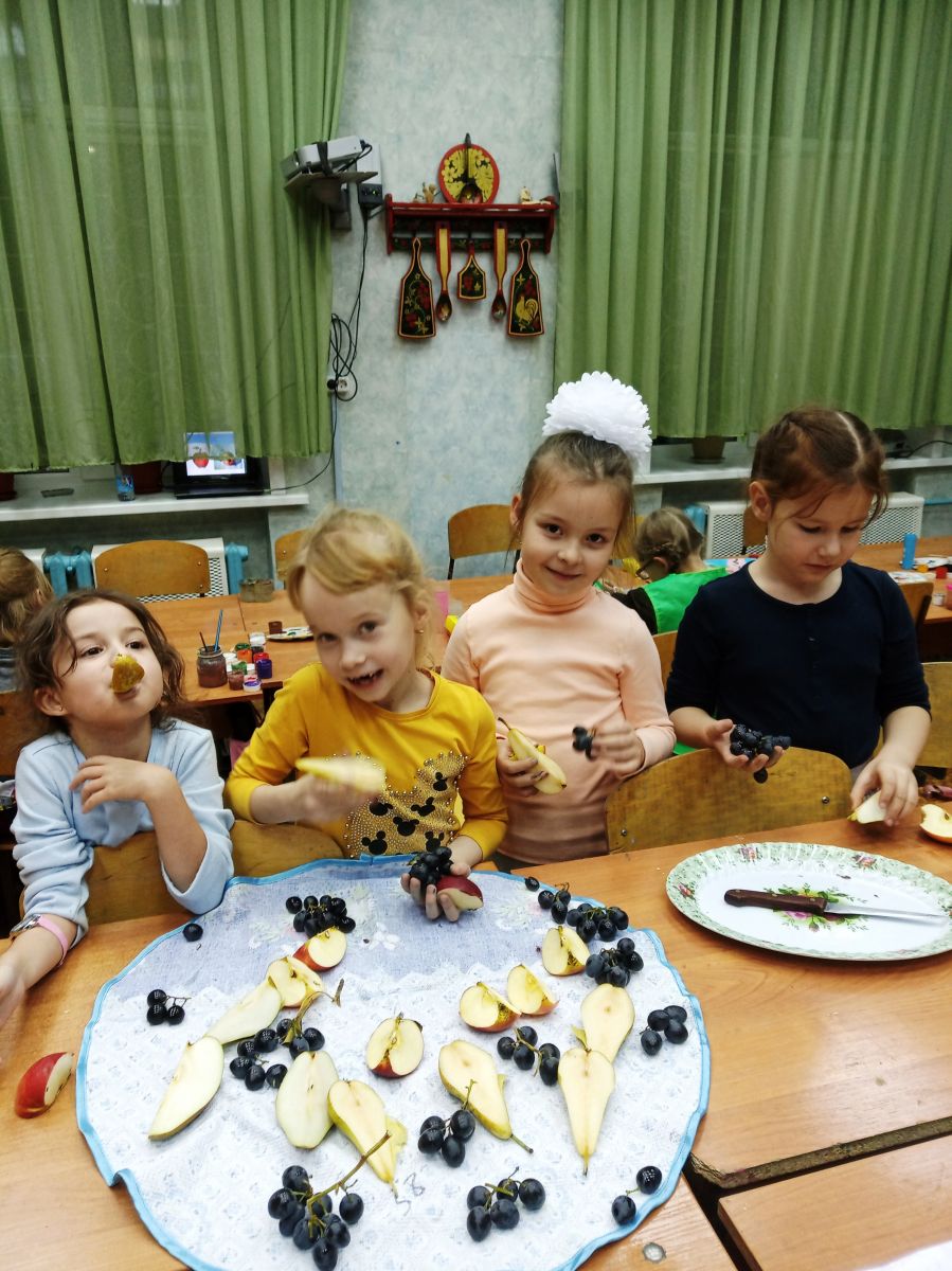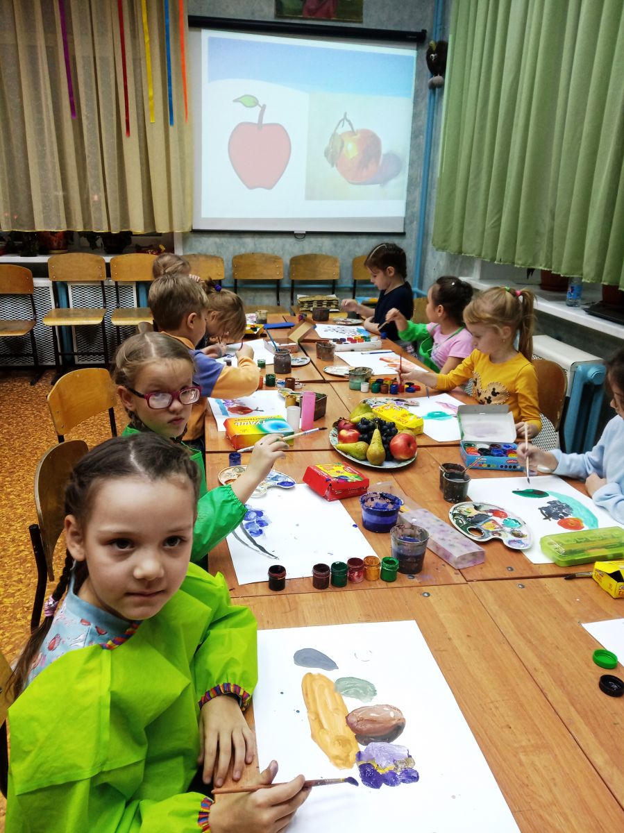 В объединении ИЗО «Ступени» в группе №5 (педагог Забирова Т. А.) прошло открытое занятие на тему «Живой натюрморт». На занятии ребята учились выделять из окружающего мира предметы живой и неживой природы. Формировали умение изображать на предметах свет, тень и полутень. В конце занятия натюрморт был съеден – сладкий…, просто объедение!