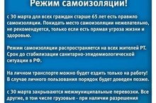 Режим самоизоляции распространяется на всех жителей РТ. Срок до стабилизации санитарно-эпидемиологической ситуации в РФ.