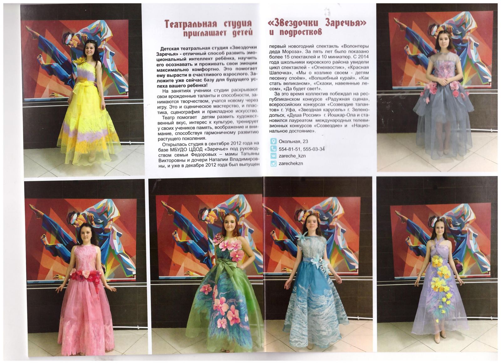 Информация о нашей театральной студии "Звёздочки Заречья" (педагоги Фёдорова Т.В., Фёдорова Н.В.) вошла в первый выпуск журнала " Стильные дети Татарстана".