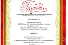 В мае прошло награждение по итогам республиканского этапа международного фестиваля "Детство без границ" . Наши педагоги Калинкина И.Ю. и Мартюшева Д.А. подготовили призеров конкурса. Поздравляем!!!