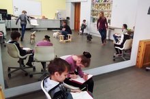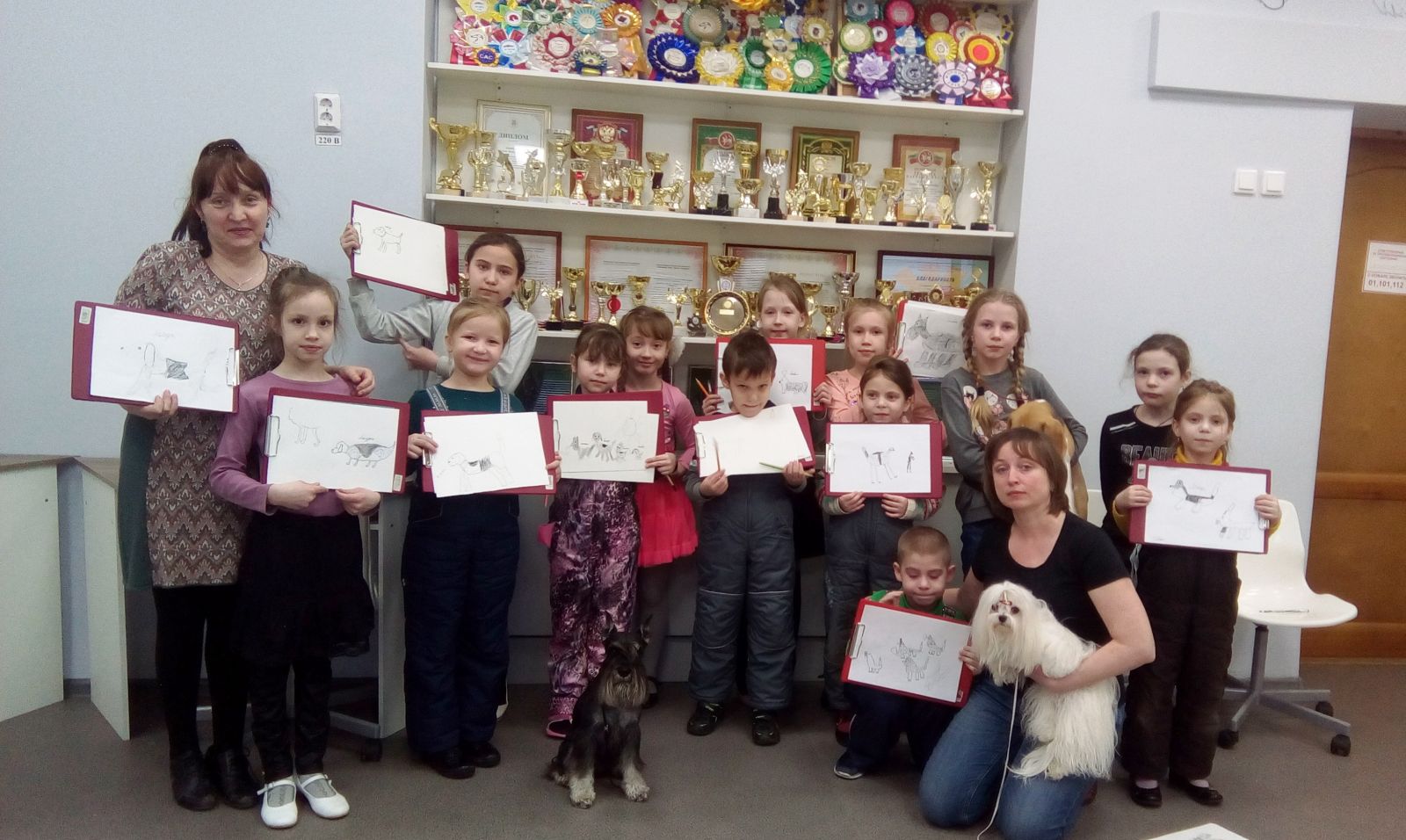 В нашем центре часто происходит тесное сотрудничество одного объединения с другим. Вот и сегодня в процессе синтеза – соединения объединения юных кинологов «Константа» (педагог Агаджанян Е. В.) и объединения ИЗО «Ступени» (педагог Забирова Т. А.) родился настоящий театр рисования с натуры. Занятие в гостях, так увлекло ребят-художников, что не кому не хотелось уходить, а наградой за работу стала возможность погладить собачек!