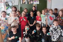 В знак единения и поддержки ученики и дошколята прикрепили символические белые крокусы на одежду. -