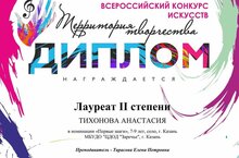 Поздравляем солистку вокальной студии "Исток" Тихонову Анастасию с победой во Всероссийском конкурсе искусств "Территория творчества". Желаем дальнейших творческих успехов! Педагог Тарасова Елена Петровна