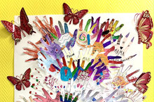 Объединение "Фантазия" (педагог Мясникова Надежда Викторовна) поздравляет любимых мам с Днём матери вот таким творческим букетом из своих ладошек.