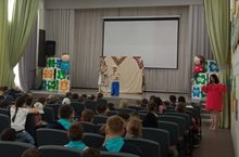 А у нас опять 130 ребят из пришкольных лагерей смотрят спектакль, играют и поют вместе с юными актёрами из театральной студии "Звёздочки Заречья"
