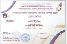 Поздравляем Богапову Зухру Фаризановну с победой в Республиканском фестивале-конкурсе «Браво-2023», посвященном Году педагога и наставника