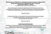 | Короткое название: | МБУДО "ЦДОД "Заречье" Кировского района г. Казани |