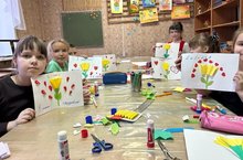2 марта в объединении "Правополушарное рисование" (педагог Мухамедзянова Н.В.) прошло открытое занятие на тему "8 марта. Подарок маме". Учащиеся изготовили открытки в технике объемная аппликация