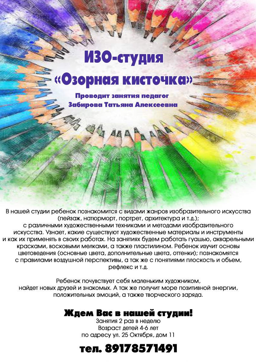 Объединение «Радужная палитра» (Заречье, ул. Окольная, 23) Ознакомиться с программой Запись в Навигаторе