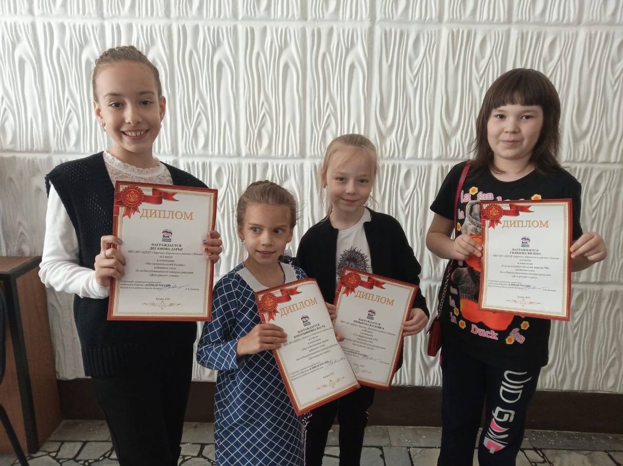 Опубликовано: 31.05.2022Каждый год Министерство Образования и Науки РТ и Татарское региональное отделение ВПП «Единая Россия» проводят замечательный конкурс «Дети рисуют страну». Сегодня поздравляли победительницу нашего центра «Заречья» в городском этапе Шайдуллину Амалию, а 30 мая, в предверии Дня защиты детей были награждены грамотами и памятными подарками ребята, чьи работы стали победителями в районном этапе: Громова София, Деганова Дарья, Горковенко Алёна, Горковенко Анастасия, Шевырева Василиса, Хисамова Эмилия, Новиков Арсений, Гилязова Вилена (педагог Забирова Т.А.), Гилазиева Камилла (педагог Паршукова Н.Н.). Поздравляем наших победителей и желаем им дальнейших творческих успехов!