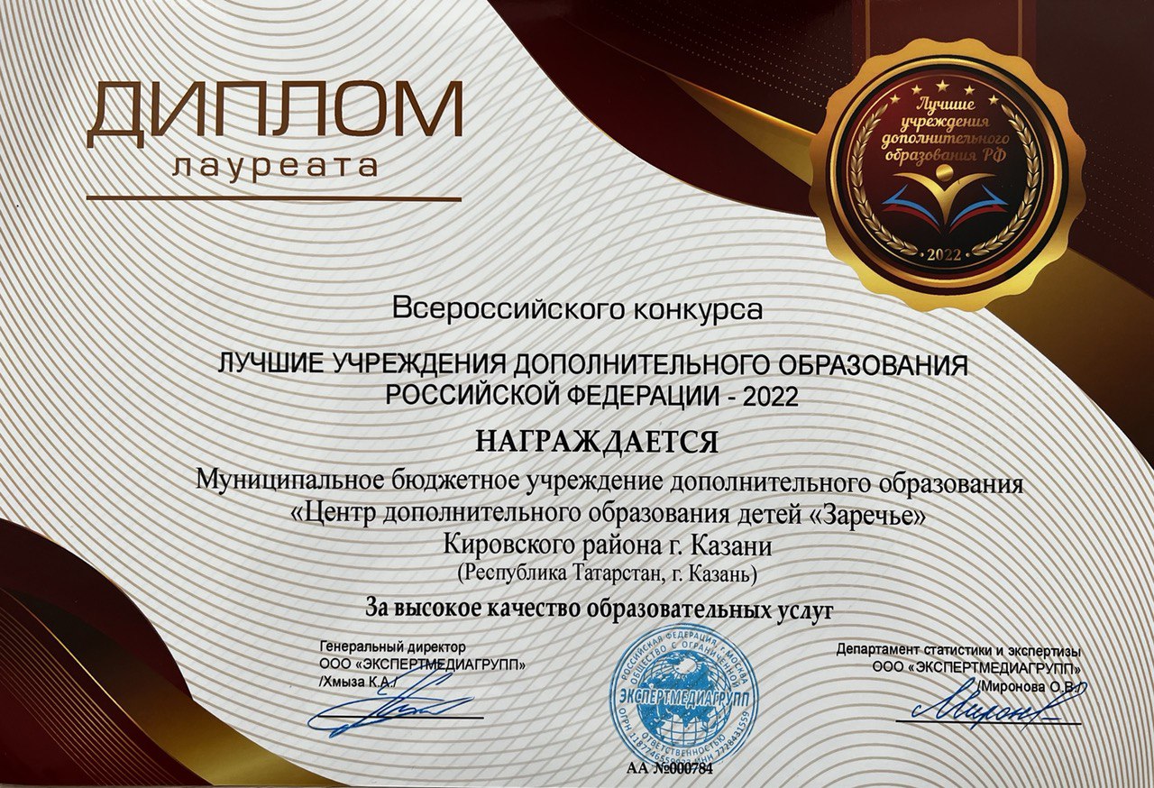 Наш Центр стал лауреатом Всероссийского конкурса «Лучшие учреждения дополнительного образования Российской Федерации-2022»