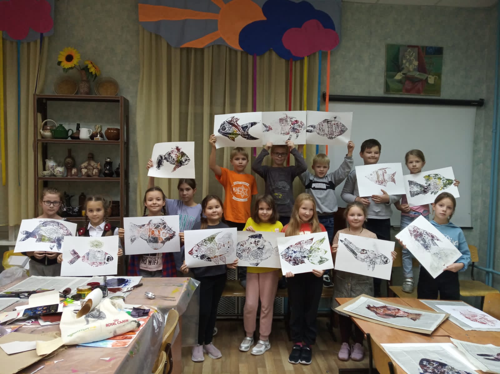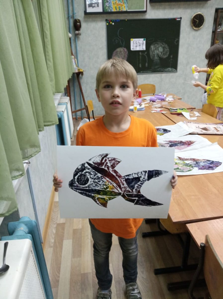 Опубликовано: 04.10.2022В объединении ИЗО «Ступени» в группе №3 (педагог Забирова Т. А.) прошёл мастер-класс по печатной графике «Рыбная лавка». В гостях у ребят побывала художница Карасёва Вера Владимировна. На занятии мы фантазировали, вырезали, клеили, а самое интересное печатали самыми обыкновенным столовыми ложками. Графическая работа получилась яркой, лаконичной и душистой: так вкусно пахло типографской краской! Всё было отлично, правда немного все испачкались, но настоящие художники всегда бывают красочными!
