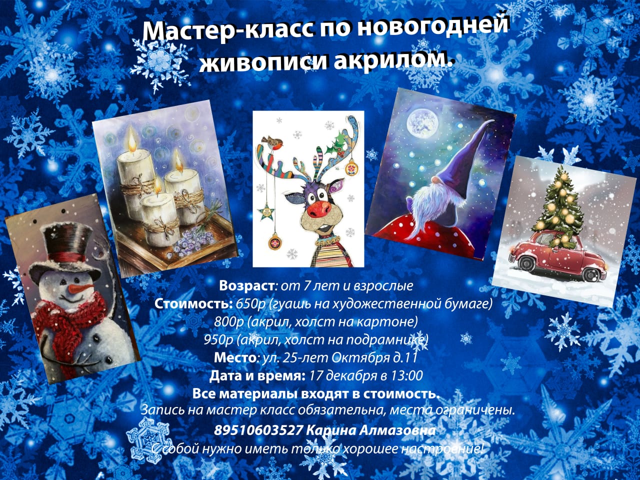 Опубликовано: 23.11.2022Приглашаем на мастер-класс по новогодней живописи акрилом