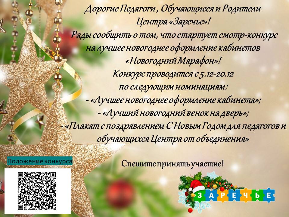 Спешим Вам сообщить, что в нашем Центре «Заречье» стартовал конкурс на лучшее новогоднее оформление кабинета