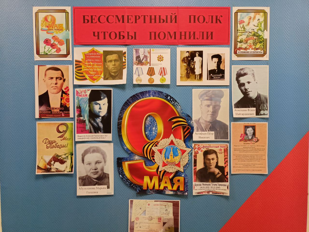 Опубликовано: 03.05.2023В клубе "Полёт" педагоги и учащиеся оформили стену Памяти "Бессмертный полк" портретами своих родных - участников Великой Отечественной войны 1941-1945 гг.