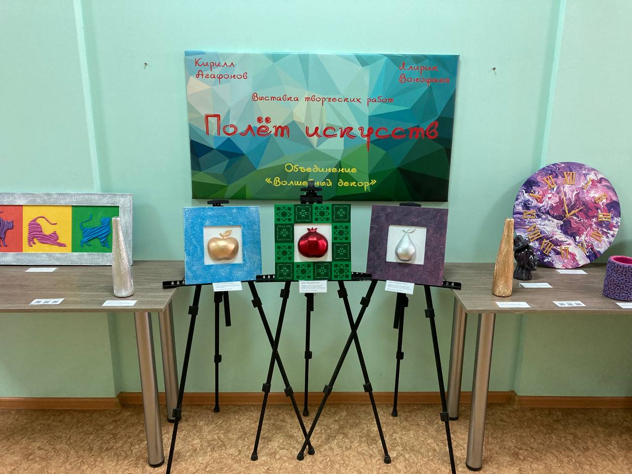 Опубликовано: 22.05.2023«Полёт искусств» - Выставка творческих работ педагога нашего Центра Агафонова Кирилла Эдуардовича. На выставке представлены образцы работ в разных техниках. Своё мастерство и опыт Кирилл Эдуардович передаёт обучающимся на занятиях в объединении «Волшебный декор».