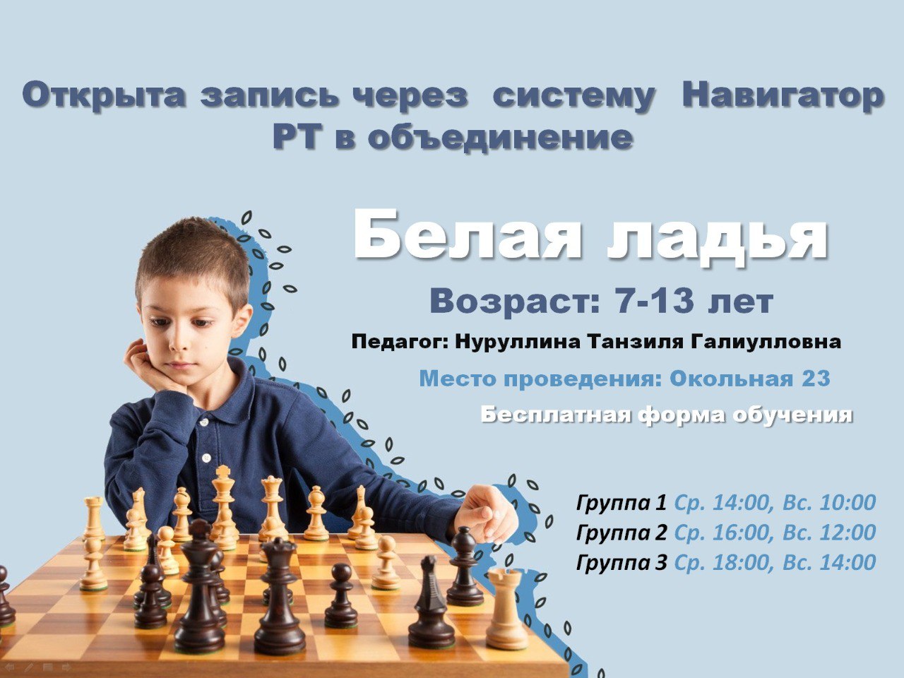 Открыт набор в объединение "Белая ладья"