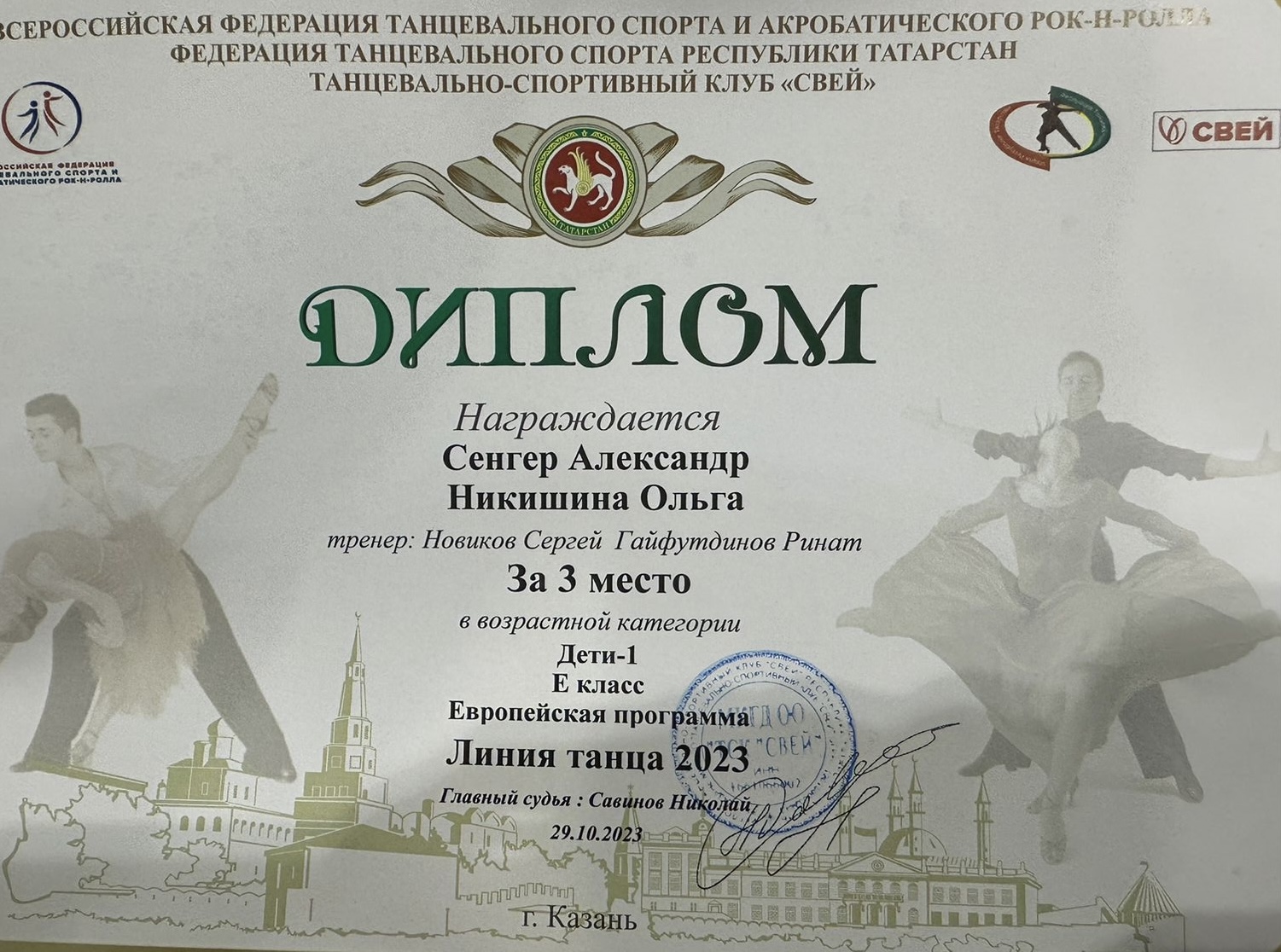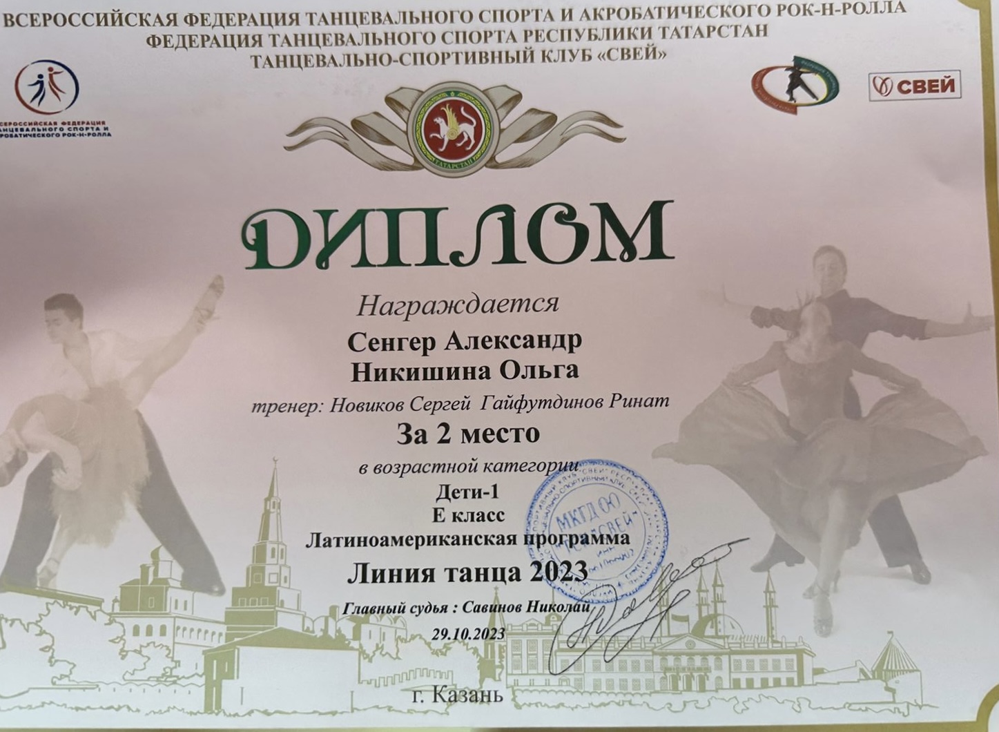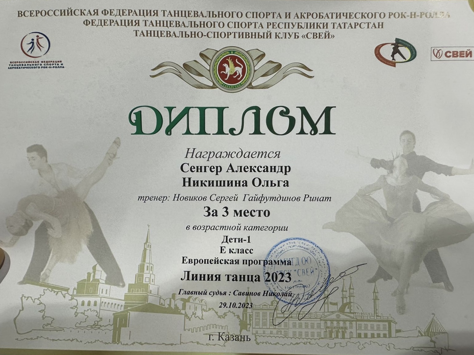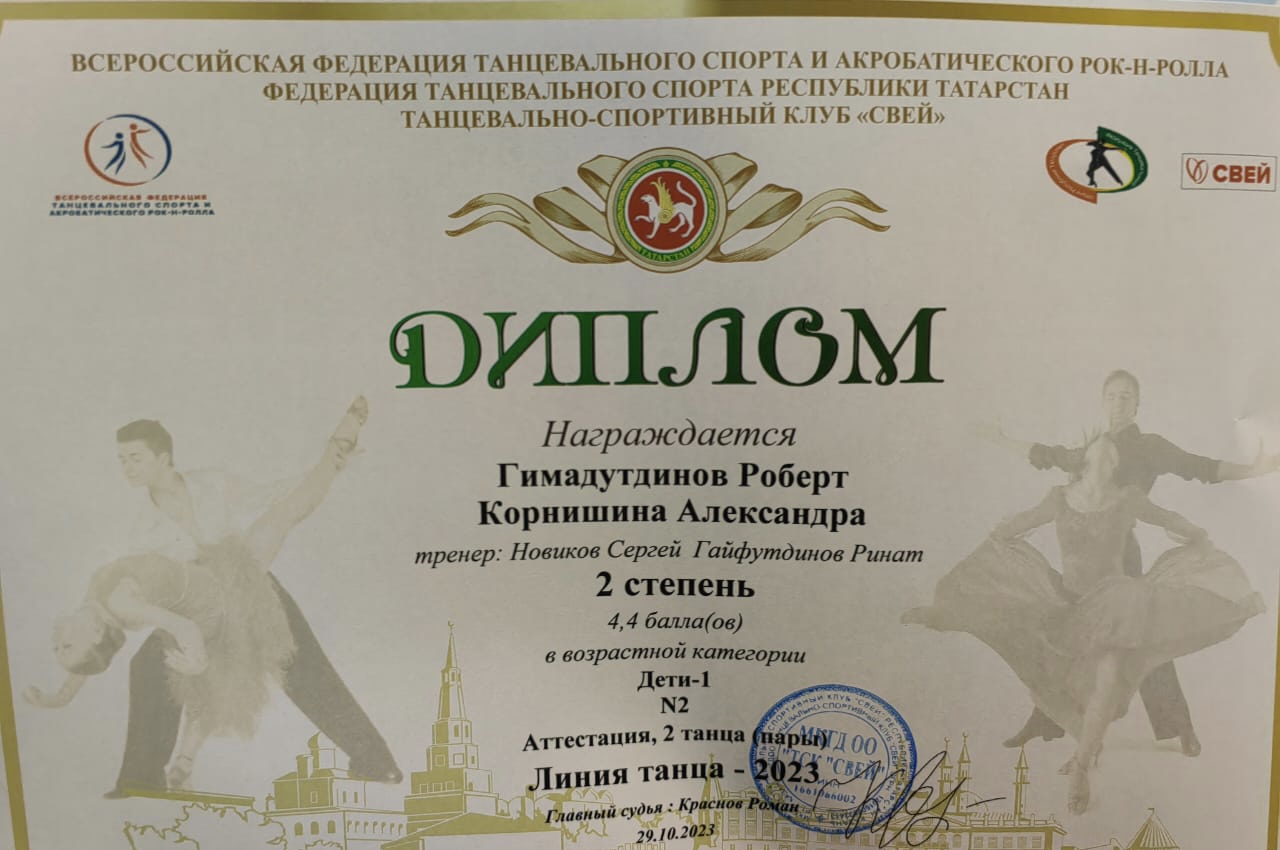 Опубликовано: 30.10.2023Поздравляем ТСК СВЕЙ с достойным выступлением и призовыми местами на Всероссийском турнире "Линия танца - 2023" (пдо Гайфутдинов Р.Н.)