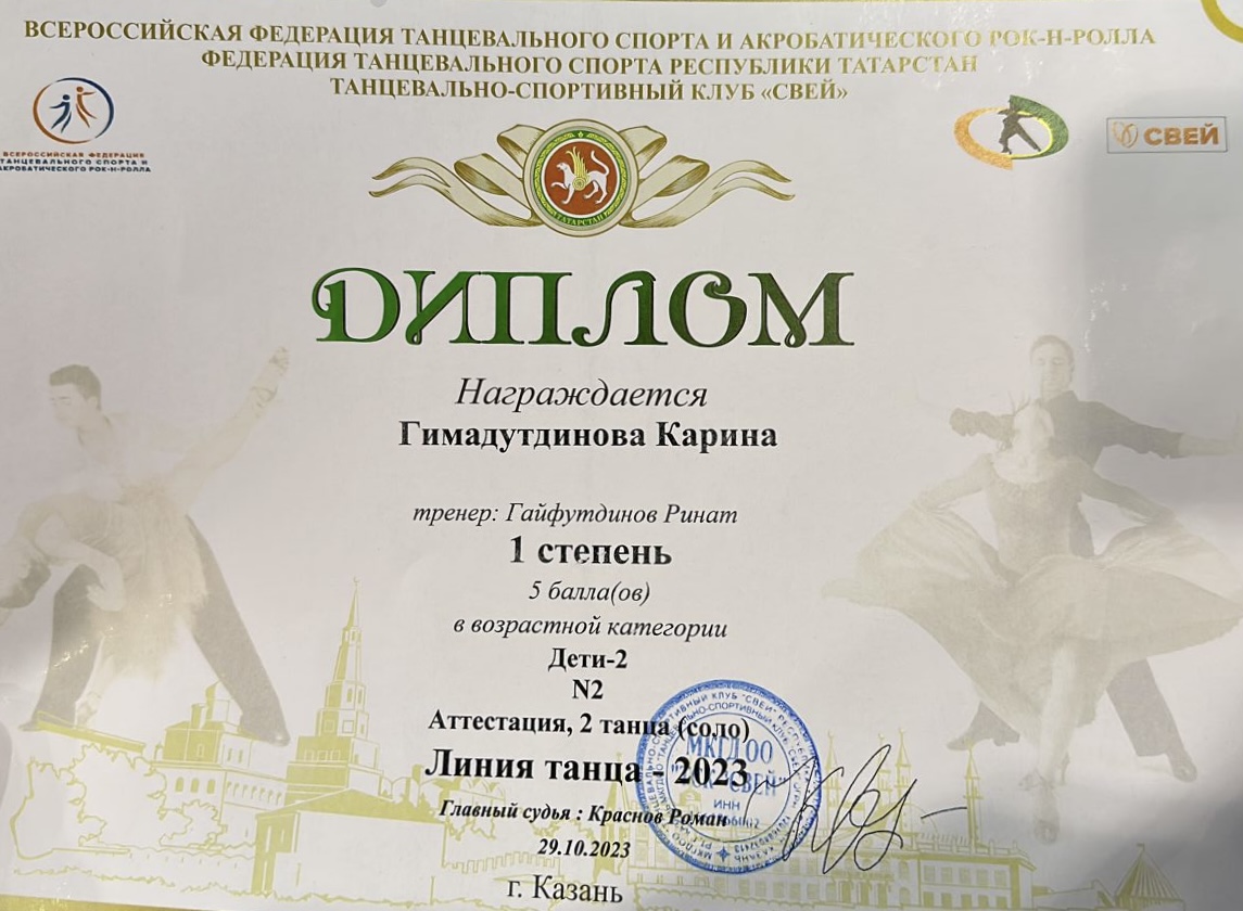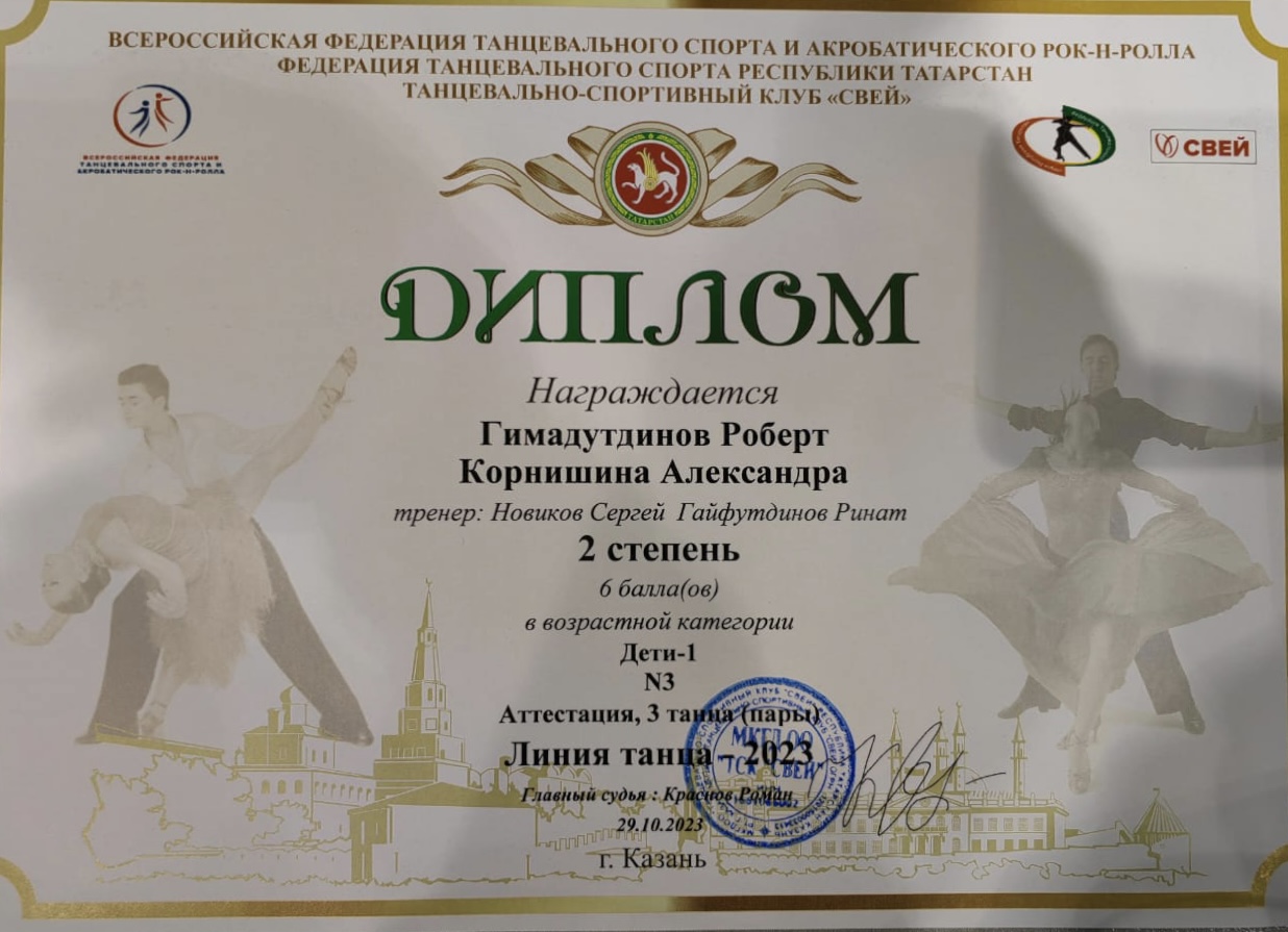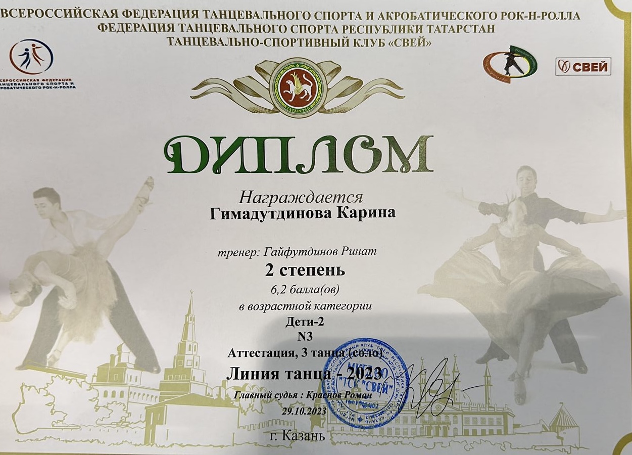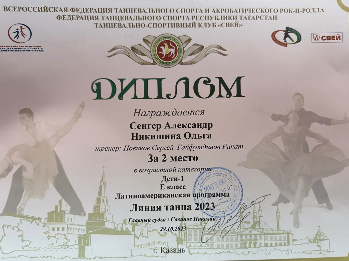 Опубликовано: 30.10.2023Поздравляем ТСК СВЕЙ с достойным выступлением и призовыми местами на Всероссийском турнире "Линия танца - 2023" (пдо Гайфутдинов Р.Н.)