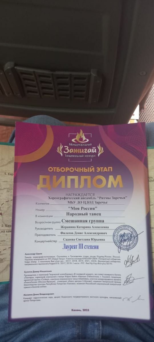 Опубликовано: 11.11.2023Поздравляем с очередной победой танцевальный коллектив "Ритмы Заречья" в Международном конкурсе "Зажигай" (пдо Жеранина К.А Филатов Д.А., концертмейстер Садеева С.Ю.) Молодцы