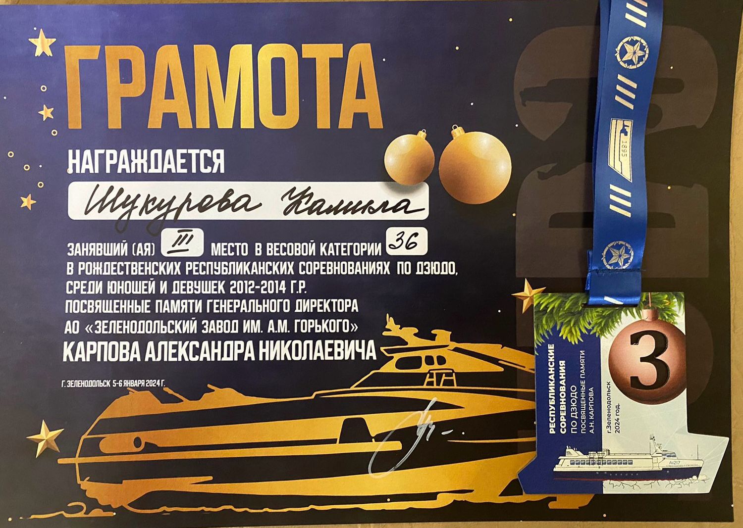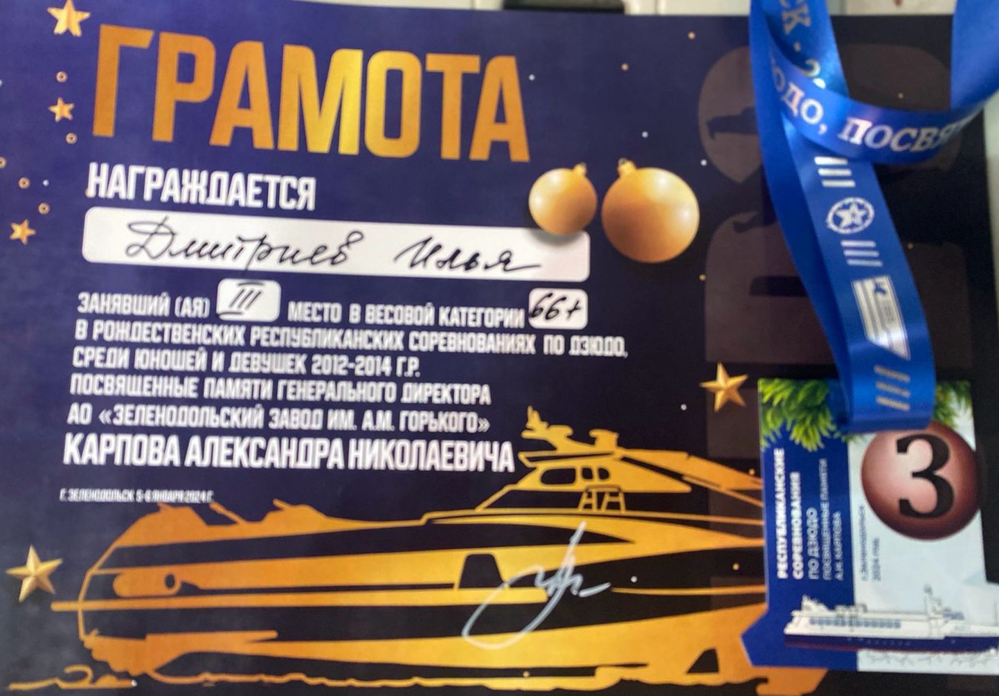 Опубликовано: 06.01.20242024 год начинается с побед! Поздравляем ребят объединения «Дзюдо» (педагог Мазаев Александр Владимирович) с победой на Республиканских соревнованиях, которые проходили 5 и 6 января в Зеленодольске. Желаем дальнейших успехов!