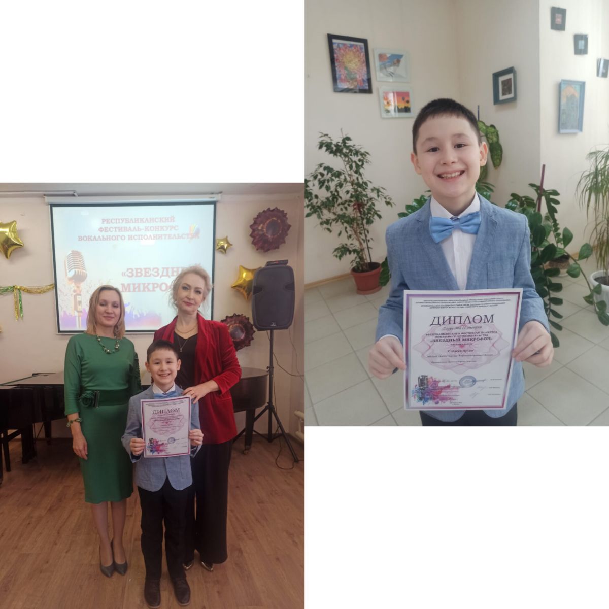 Опубликовано: 09.02.2024Поздравляем обучающегося объединения «Незабудки» Сагдеева Арсена (педагог Димеева Наргиза Марсовна) с победой в Республиканском фестивале-конкурсе вокального исполнительства «Звёздный микрофон». Он стал лауреатом II степени.