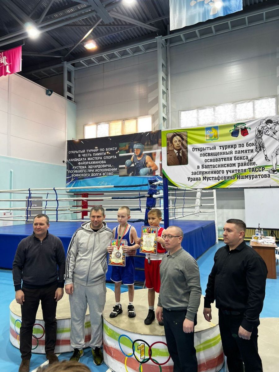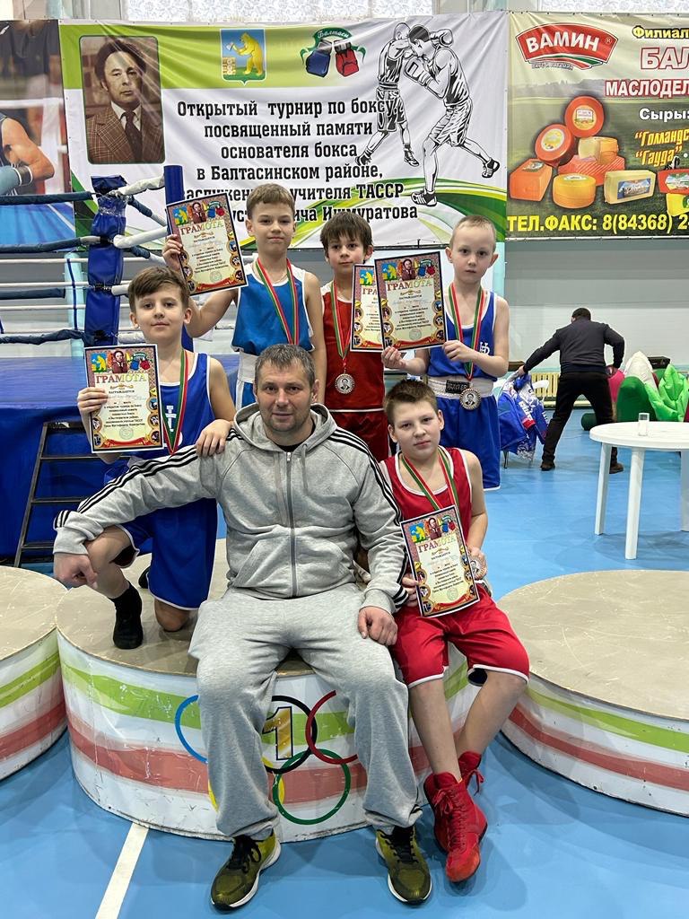 Опубликовано: 25.02.2024На Республиканском открытом турнире по боксу, посвященном памяти основателя бокса в п.г.т. Балтаси Урана Мустафовича Ишмуратова, учащиеся объединения «Бокс» (педагог Ахметшин Руслан Искандерович) стали победителями в разных весовых категориях: