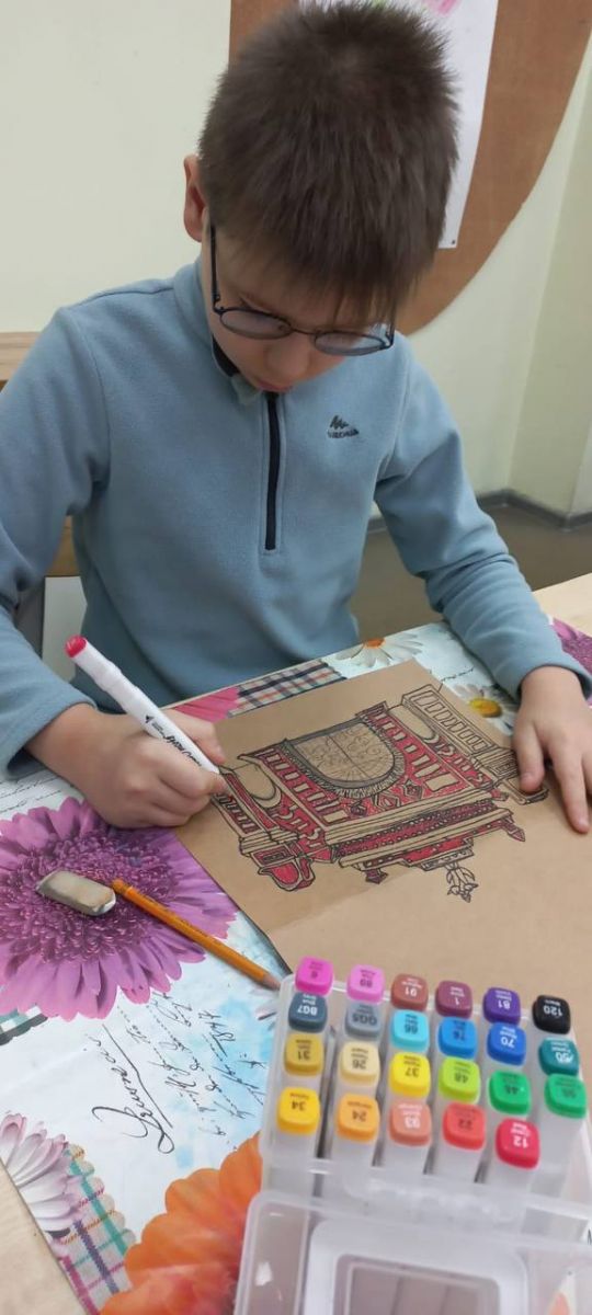 Виртуальная экскурсия вдохновила ребят на новые работы — архитектурные скетчинги, посвящённые нашему городу!