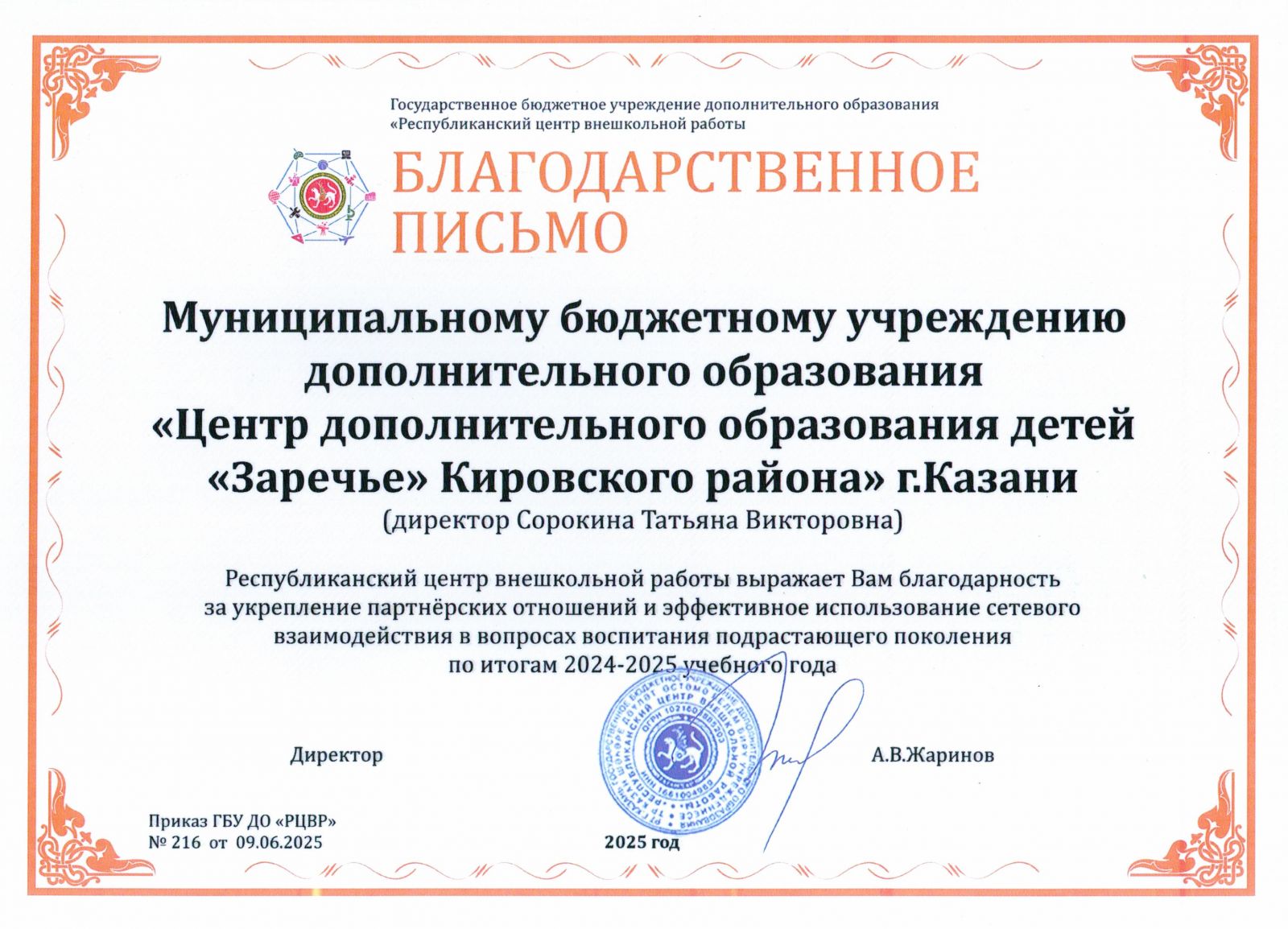 | Короткое название: | МБУДО "ЦДОД "Заречье" Кировского района г. Казани |