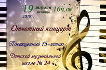 19 апреля на базе Гимназии - интернат № 4 с большим размахом прошел Отчетный концерт Детской музыкальной школы № 24 в рамках 15-летнего Юбилейного года школы.