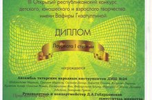 ПОЗДРАВЛЯЕМ АНСАМБЛЬ ТАТАРСКИХ НАРОДНЫХ ИНСТРУМЕНТОВ КЛ.ПРЕПОДАВАТЕЛЯ ГАБДРАХМАНОВА ДАМИРА АЛМАЗОВИЧА, CО ЗВАНИЕМ ЛАУРЕАТА I СТЕПЕНИ!!! ЖЕЛАЕМ ТВОРЧЕСКИХ УСПЕХОВ И НОВЫХ ПОБЕД!!!