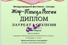 Власов Мирон - Лауреат I степени Международного фестиваля-конкурса «Жар-Птица России» (преп. Афанасьева Н.А.)
