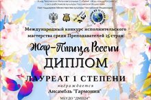 Поздравляем наш преподавательский состав инструментального ансамбля "Гармония", ставшего Лауреатом 1 степени в Международном конкурсе исполнительского мастерства среди преподавателей 15 стран "Жар-Птица России". Гордимся нашими преподавателями и желаем дальнейшего развития ансамбля, вдохновения, новых творческих идей и ярких побед!