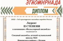 ♦ Лауреат II степени - Сводный фольклорный ансамбль (рук. Михайлова В.А., Шарафутдинова Р.Н., Габдрахманов Д.А., конц-р Гилязов И.В.)