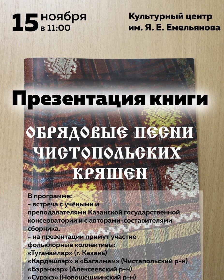 3. Презентация хрестоматии "Обрядовые песни чистопольских кряшен". Авторы-составители: профессор КГК, доктор искусствоведения Е.М.Смирнова и преподаватель ДМШ № 24 Л.Р.Гилязова. Культурный центр им.Я.Емельянова 15.11.2019г.