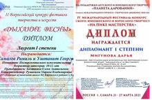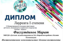 Еще 4 диплома у наших учащихся на II Международном конкурсе-фестивале "ArtFest-Казань".
