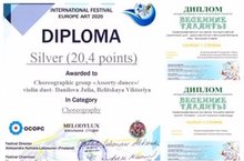 Диплом Лауреата 1 степени и Диплом Лауреата 3 степени Международного многожанрового конкурса "Весенние таланты".