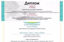 Горлова Оксана Александровна приняла участие в VI Всероссийской научно-практической конференции "Развитие образовательной мотивации дошкольников и школьников. Название работы "Шкатулка внутри баяна".