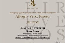 Мусина Самира - лауреат 2 степени.Конкурс «Allerro. Vivo. Presto»: