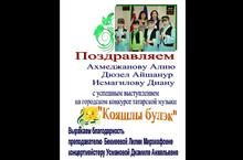 Поздравляем Ахмеджанову Алию, Дюзел Айшанур, Исмагилову Диану с успешным выступлением на городском конкурсе татарской музыки "Кояшлы булэк" 05.02.2013