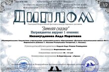Диплом лауреата 1 степени, три диплома лауреата 2 степени, диплом лауреата 3 степени.