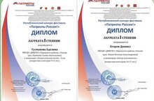 В номинации "Патриотическая песня" и "Автор-исполнитель" наши дети стали лауреатами 1 степени!
