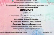 НА Международном конкурсе "TATARSTARS" дебютировали учащиеся Карпачевой Э.Н. - Гузельбаев Эмиль и Бацунова Полина. Поздравляем Эмиля и Полину - лауреатов 3 степени конкурса-фестиваля!