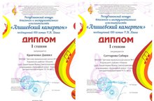Кравченко Даниил - диплом 1 степени, Саттарова Сабира - диплом 1 степени.