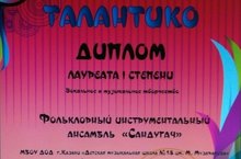 Инструментальный ансамбль "Сандугач" стал ЛАУРЕАТОМ I степени Международного интернет-конкурса «ТАЛАНТИКО» 20.10.2015