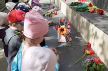 5 мая накануне праздника Дня Победы воспитанники средней группы №12 посетили памятник лейтенанту Ю. И. Красикову.