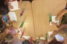 Сегодня в подготовительной к школе №группе 5 прошло занятие "Изобразительная деятельность" по теме" Лес, точно терем расписной". Дети учились создавать образы разных деревьев, кустов и составлять из них коллективную композицию "Осенний лес" подбирая красивые цветосочетания.