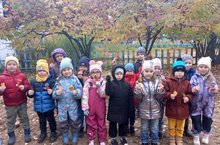 На прогулке дети старшей группы № 11 наблюдали за осенним деревьями, учились определять деревья по листьям и окраске!