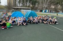 Ребята соревновались в командах по станциям:собирали рюкзаки, проходили полосу препятствий, учились правильно собирать костры и напоследок все вместе палатку. -