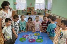Одновременно ребята повторяли названия одежды, цветá на татарском языке, что способствовало расширению их языкового кругозора. Ребята проявляли инициативу и старались самостоятельно справиться с заданием, радуясь своим успехам и новым знаниям. В конце игры каждый ребёнок смог похвастаться красивой одеждой с аккуратно «пришитыми» пуговицами разных цветов.